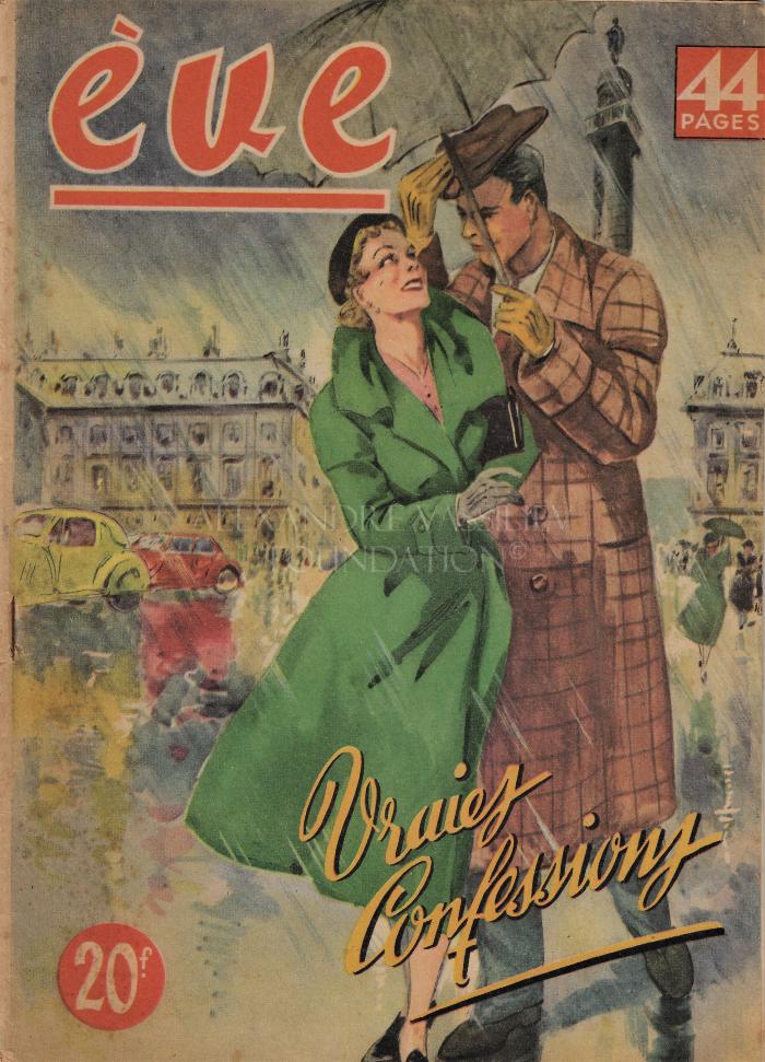 "Ève : le premier quotidien illustré de la femme" is a daily then a weekly French women's magazine published between February 1920 and June 1954. Founded by Francis FOUSSARIGUES (1880 - 1942), it went through two periods of interruption (1st year, between June 1920 and October 1920, then between October 1940 and September 1945. The magazine also appeared as a supplement to various provincial newspapers (La Dépêche de Brest, L'Éclaireur de l'Est, La Petite Gironde) before being absorbed by the review "Rêves".