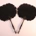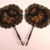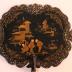 Pair of hand screen decorated with chinese designs and arabesques. Both hand screens are decorated with drawings of houses and three chinese men.