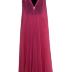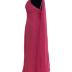 Midi-length pink chiffon dress with cloak made of the same fabric, with v-cut on the back decorated in the middle with rectangle (embroidered with silver threads and sequins). Gown bottom and dress straps are embellished with silver lines embroidered with silver threads and sequins. Garment closes at the back with a zipper.