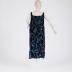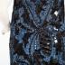 An electric-blue and black sequined flapper midi length sleeveless dress, the black tulle gown entirely covered in a shimmer of blue sequins with large black spidery motifs in large black paillettes, lined in organza.