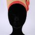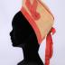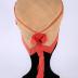 Women's beach hat in woven straw, trimmed with sewn worked red grosgrain ribbon, tied in a bow on one side, and pleated in a cockade on the front. The shape of the hat is round and leaning on one side.