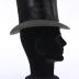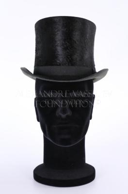 Opera hat, sometimes also known by the nickname "topper", in black beaver fur on the top with a grosgrain ribbon around ending with a bow, and cream colour paper lining with brown leather trim inside. Comes in its original burgundy cardboard box.