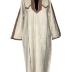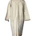 Russian traditional long tunic style dress, knee-length, in linen, hand embroidered on the neckline, sleeves and the bottom with red, green, purple, pink and black threads forming an ethnic pattern.