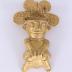 Matte gold brass pendant representing a woman in the pre-Hispanic style, kneeling and wearing a large headdress. She is represented naked wearing bracelets on the forearms, wrists and below the knees as well as a ring in the nose.