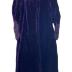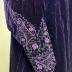 Dark violet velvet evening coat with short stand collar, long sleeves embellished with thin corded silk ribbons and beads on the cuffs.