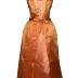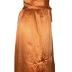 Strapless dress in silk satin made in two colors orange and peach, decorated ar the front with a small bow on the waistline.