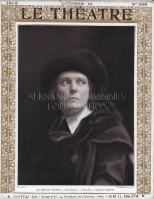 The front page represents a colorised photography of Mme Suzanne DESPRES in the role of Hamlet.