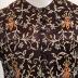 Long black silk jacket fully embroidered with floral pattern in ivory, orange, yellow and light blue.