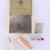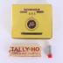 Rectangle yellow cigarette box. The name is the cigarette is written both times, once on a ribbon and the other in a purple circle with a crown over it and the whole is surrounded by a design that resembles a sun. The Parliament of the Kingdom of Great Britain is inside the top part box which is gold inside. The bottom part where the cigarettes would be is silver. The box contains gummed rice cigarette paper from Australia and a small tube container with wick for the lighter.