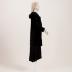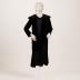 Black velvet coat with gold shimmer, embellished with black ostrich feathers at the edge of turn-down collar (attached to the coat only at fronts), lined with gold lamé.