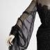 Chanel style evening gown made of floral patterned machine guipure and the finest chiffon, with a guipure skirt appliqued onto a chiffon bodice, volume chiffon bishop sleeves on the narrow cuffs and black satin underskirt bordered with lace at the hem.