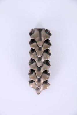 Clip brooch made of metal composed of six plates sottered and overlain, possibly representing a spine, serpent, or flower.
