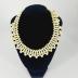 Collar necklace knitted of graduated ivory plastic beads, with hook and eye metal clasp.