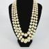 An ivory triple-strand necklace of graduated frosted pearly glass beads, matinee length, with a gilded brass snap clasp set with an ivory hemisphere.
