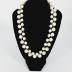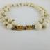 Double strand necklace of ivory bakelite iniform round beads, connected with gilded brass jump rings, matinee length, with a fold-over gilded brass clasp.