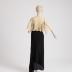 Tea dress with straps, decorated with machine laces and velvet bow on the hips; with scalloped machine laces bolero, flyaway sleeves with a slit along the bottom seam, embroidery on tulle in the style of Valenciennes lace.