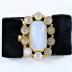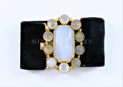 Woman black velvet bracelet with 10 round white quartz and 1 octagon white quartz in the center.