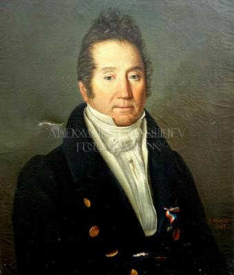 Portrait of a man of the French bourgeoisie under the reign of Louis Philippe. The portrait is dated 1831, the first year of the July Monarchy. The dress and the hairstyle of the character are typical of the time Charles X. He carries in the buttonhole a tricolor ribbon in the colours of a flag of France. He certainly played an important role in the days of July 1830 that saw the advent of the new regime.