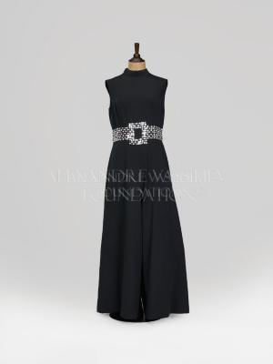 Evening lycra polyester jumpsuit with a wide glittery embroidered belt