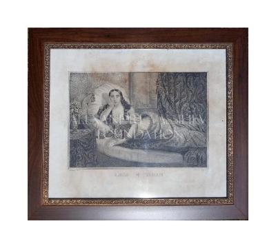 Woman portrayed in the Greco-Roman style with her loose hair, which was only done in a very private stair. Tears fall from her eyes that respond to the message she holds in her left hand. One of the sleeves falls disarmed on the elbow which increases the width of the neckline.
