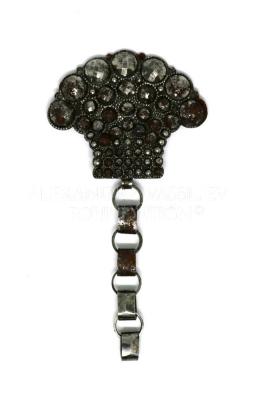 Cut steel chatelaine or clavandier composed of a main element from which a chain is suspended.