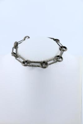Necklace consisting of an alternation of circular and rectangular metal pieces.