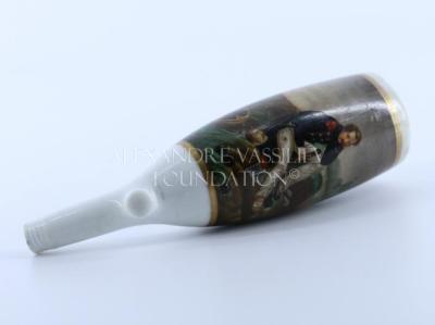 Porcelain pipe with a handpainted picture representing a soldier with shovel at the battlefield.