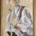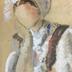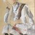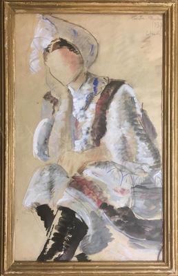 Preparatory study gouache on paper painting representing a Russian woman in traditional russian dress called sarafan and wearing a kokoshnik hair accessory.