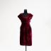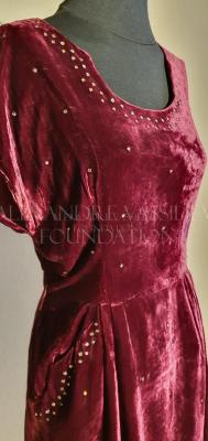 Mauve color velvet cocktail dress decorated with rhinestones.