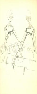 Fashion drawing by Yves SAINT LAURENT for Christian Dior for the Autumn-Winter 1960-1961 collection which was the last collection SAINT LAURENT did for the Haute Couture Fashion House.
