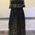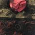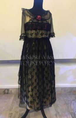 Black tulle and lace ball gown with a beige lining and front embellished with red flower from silk.
