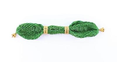 Miser's purse in green wool mesh, with two golden pinchbeck rings that enable the purse to open and close, and decorated with pinchbeck tassels from both sides.