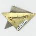 Modernist brooch in brass and silver metal of Space Age geometric fashion design.