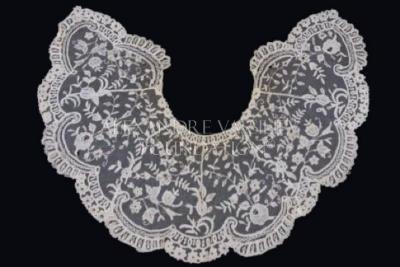 Canezou type removable collar for women in white lace tulle, mechanical imitation Brussels lace.