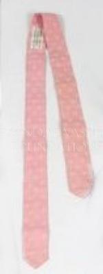 A necktieĀ in pink silk twill printed with white polka dot pattern.