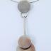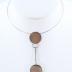 Modernist necklace in copper, nickel and zinc alloy called Maillechort, consisting of a short and tight choker type metal wire chain with a pendant consisting of three circles, two of which on a flat metal clip.